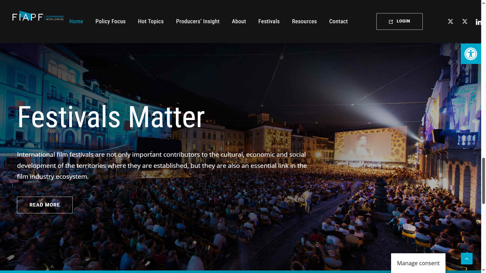 The FIAPF (Fédération Internationale des Associations de Producteurs de Films; English: International Federation of Film Producers Associations), created in 1933, is an organization composed with 36 member associations from 30 of the leading audiovisual production countries. Its Secretariat is located in Brussels, Belgium. FIAPF is also in charge of regulating international film festivals, including some of the world's most important ones.